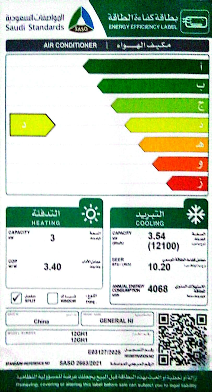 مكيف سبليت جنرال هاي 12 حار وبارد بارد 12100 وحدةمواصفات مكيف اسبليت جنرال هاي 12100 وحدة حار وبارد :العلامة التجارية : GENERAL HIحجم المكيف : 12100 و...