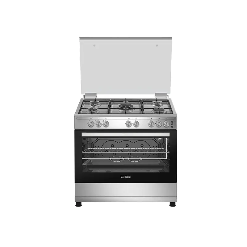 فرن غاز جنرال سوبريم تركي -60×90 سم -5 شعلات أوروبيةمواصفات فرن غاز جنرال سوبريم تركي -60×90 سم -5 شعلات أوروبية :5 شعلات غاز (أوروبية الصنع)2 شعلة (الأمامية اليسري/المركزية) مزدوجة ماركة (ساباف) – إيطالية الصنعالشعلة الخلفية اليمني ثلاثية بقوة 2500 وات – ماركة (ساباف) – إيطالية الصنعمؤقت ديجيتال LED يعمل باللمس – مصباح داخلي لمتابعة حاله الطهيحوامل من المعدن الثقيل (زهر) – داعم إضافي للمقلاة من المعدن الثقيل (ووك)إغلاق سلس لباب الفرن – درج تخزين قابل للفتح – نظام أرفف تلسكوبيإشعال ذاتي كامل بيد واحدة – محول غاز موديل جديد (منظم)أغطية للشعلات مسطحة بسمك 0.3 سم (مطفية)جهاز سلامة في حالة فشل الإشعال للشعلات (أمان كامل)مفاتيح التحكم بغطاء من الاستيل المقاوم للصدأ – مقبض متين لباب الفرن من الألومنيوممراوح مزدوجة لتوزيع الحرارة (تيربو) – مروحة داخلية مدمجة للتبريدغطاء زجاجي علوي مع إطار أمامي من الألومنيومشواية داخلية للدجاج (دوارة) + تيرموستات مدمجزجاج باب الفرن عازل للحرارة (Low – E) – (ثلاثي الطبقات)إطار من الاستيل المطفي علي زجاج باب الفرن الخارجي + زجاج خارجي عاكس (مرآة)عاكس للحماية من اللهب أثناء الشوي (مدمج)نظام حوامل الأرفف من الأسلاك المطلية بالكروم – تجويف داخلي للفرن من المينا (رمادي)صينية عميقة للفرن + شبكة سلكية مطلية بالكروم + صينية فرن دائرية إضافيةشبكة إضافية للصينية من الاسلاك المطلية بالكرومسطح من الاستيل انيق المظهر – سهولة الاستخدام والتنظيفالواجهة من الاستيل غير اللامع – الجوانب مطلية باللون الفضي المعدنيطبقة عزل مزدوجة من الصوف الزجاجي الأبيض مع غطاء من رقائق الألومنيومأرجل قابلة للتعديل (5 سم) – كابل الطاقة من النوع البريطانيصناعة الفرن: تركيالابعاد: 90*60*85 سم
