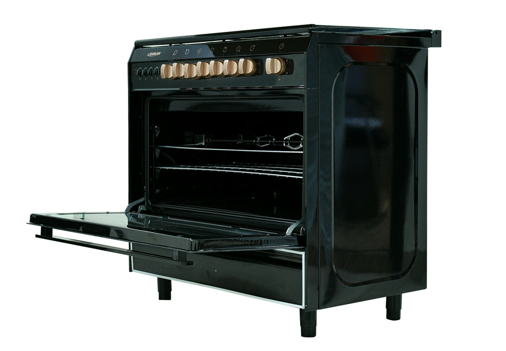 فرن غاز رسلان 5 عيون 60×90 سطح استيل جوانب اسود + مروحه مع مفاتيح ذهبي