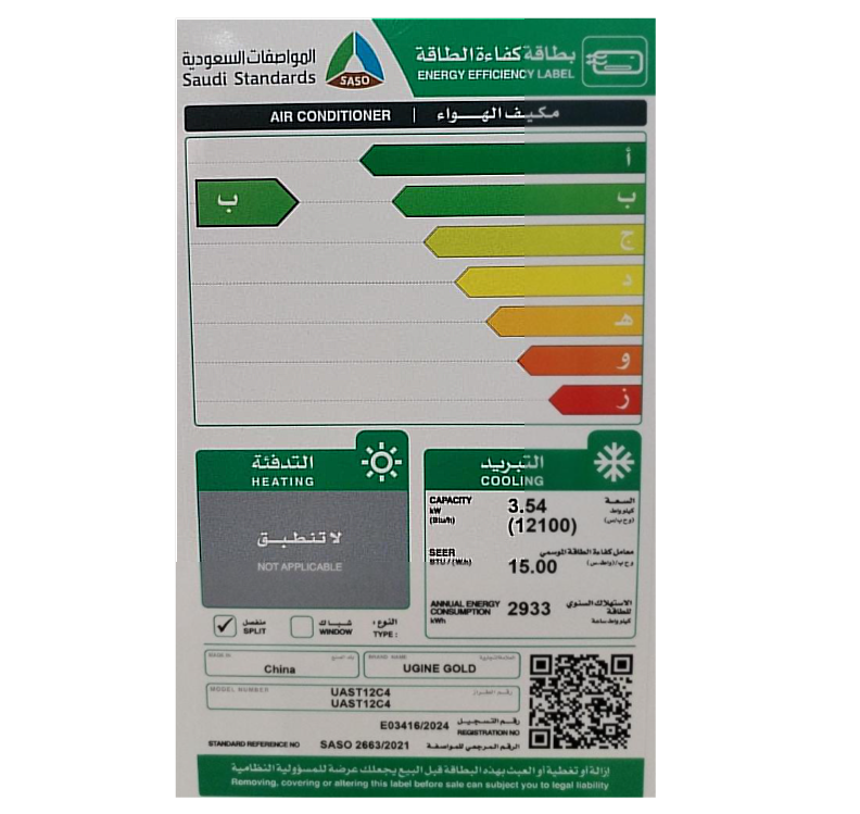 مكيف اسبيلت اوجين جولد 12100 وحدة بارد انفيرتر موديل UAST12C4 جديد